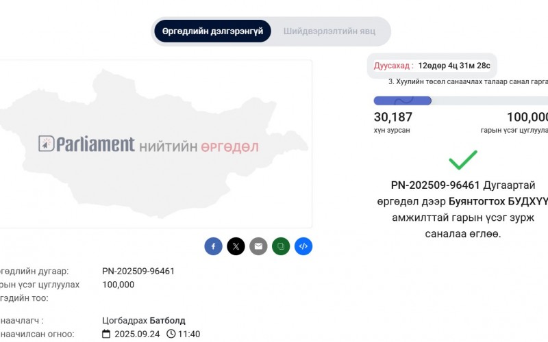 Бүрэн эрх нь дууссан УИХ-ын гишүүний тэтгэмжийг эсэргүүцэж буй бол гарын үсэг зураарай